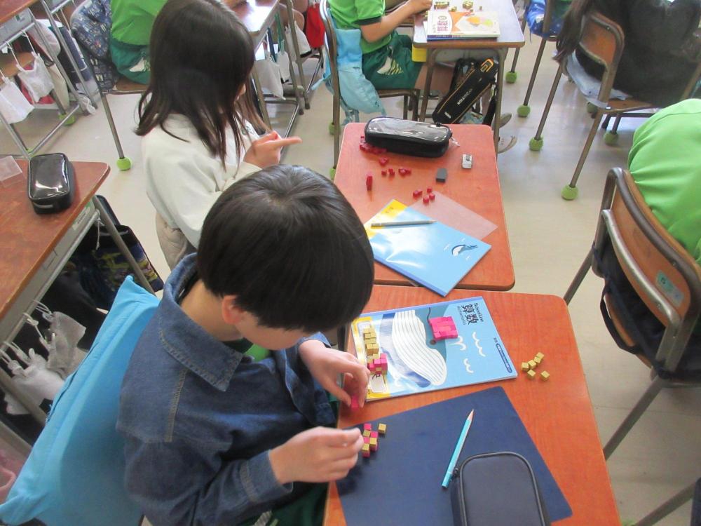 1年生算数 両手が頭の上にあるのは、「困ったなぁ」ではなく、「待ってます」のサインです。