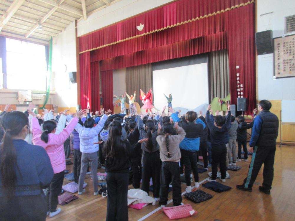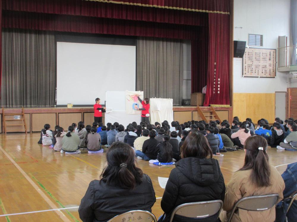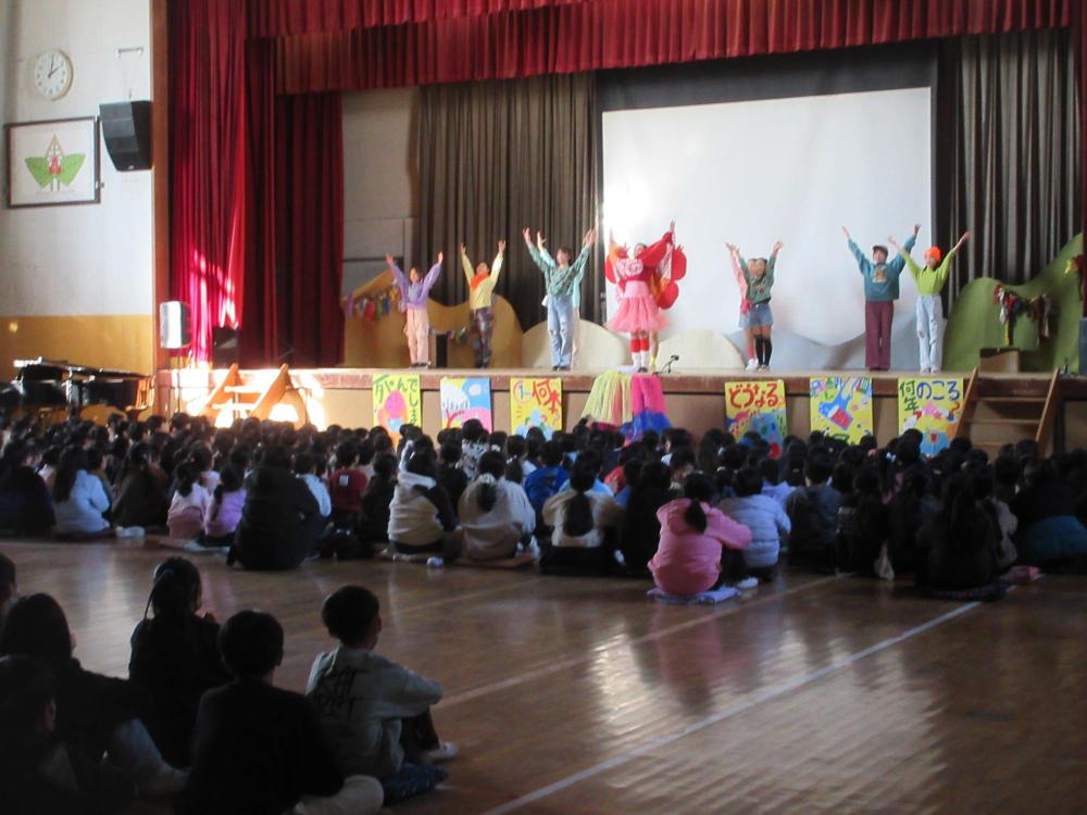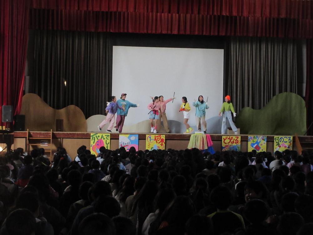 環境活動団体「earth FUNTRY!」の皆さんによる環境問題学習ミュージカル「小さな一歩」を全校児童で鑑賞しました。