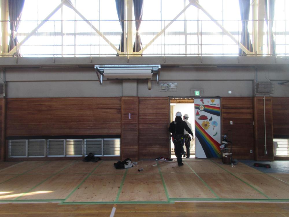 懇談会中、お預かり児童は体育館でビデオを観ていました。