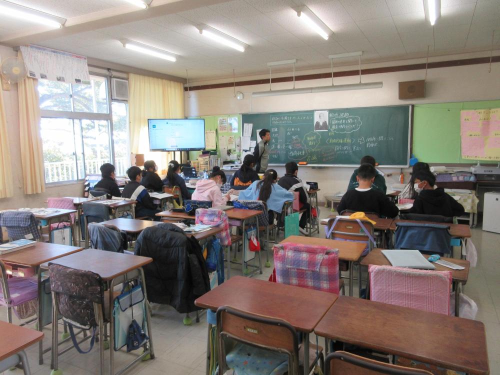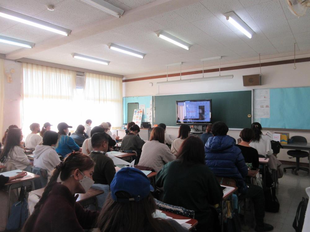 体育館が空調工事のため使用できず、保護者の方には各教室に分かれて、オンラインで説明を聞いていただきました。
