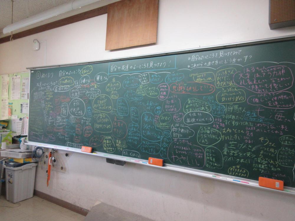 6年道徳「自分と友達のよいところ」黒板いっぱい、友達の良いところが書かれていました(^-^)V