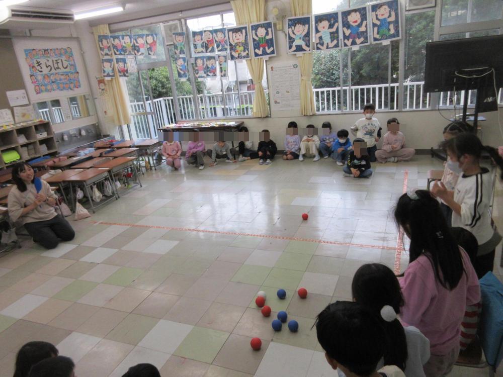 1年生が人権週間で「ぼっちゃ」をしていました。