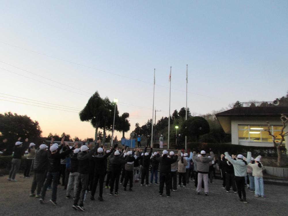 鹿野山3日目の朝 きれいな朝日が昇る中、ラジオ体操。