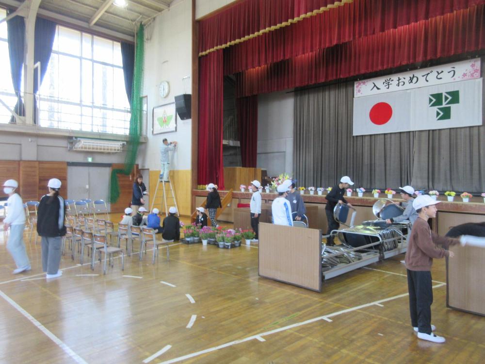明日の入学式に向けて、6年生が式場準備をしてくれました。