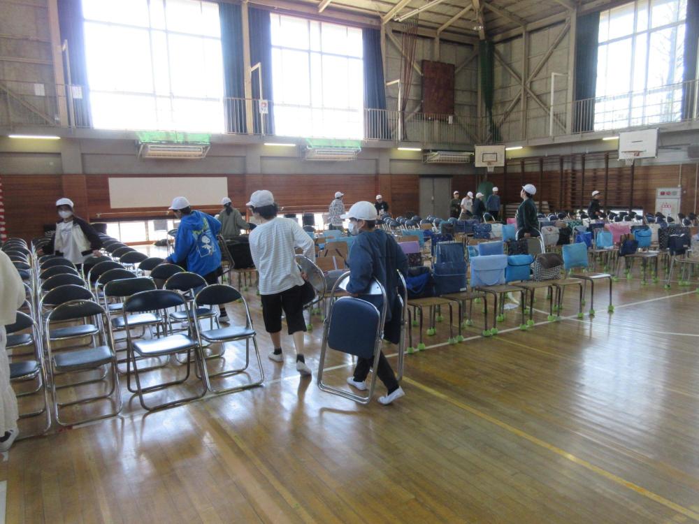 椅子がないのは、入学式場の体育館に運んでしまったからです。