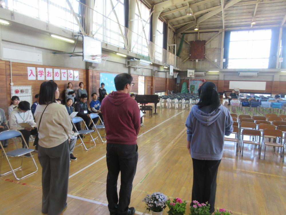 6年生が入学式に向けて、練習開始。最高学年としての心構えを聞いています。