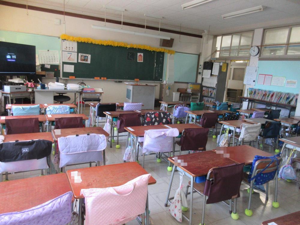 6年生の教室をのぞくと、誰もいない教室は整頓され、きれいな状態でした。