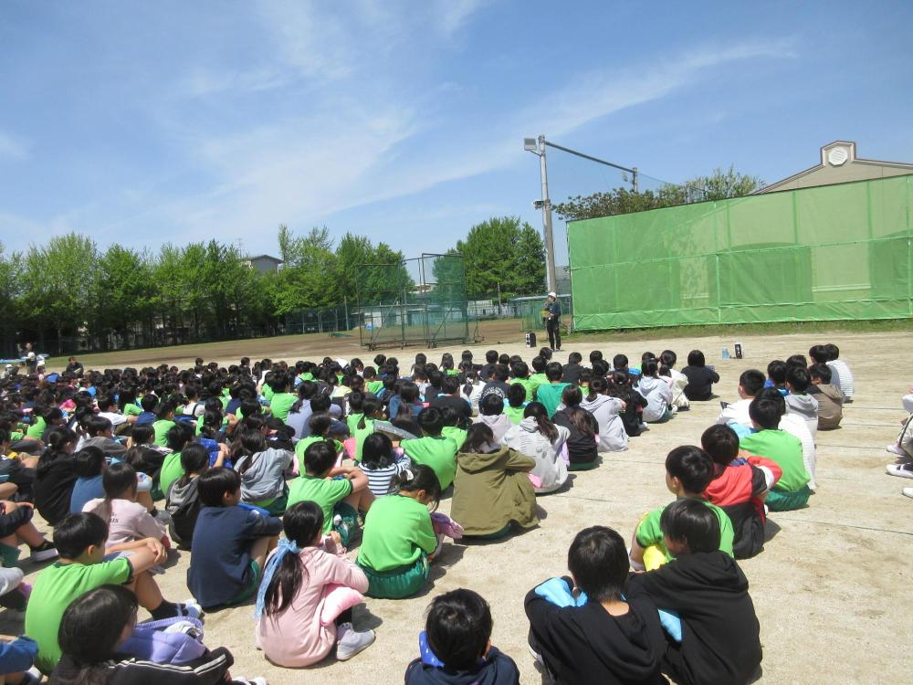 1学期の清掃開始日でした。掃除の前と後に、きちんと並んで目当ての確認や反省をします。