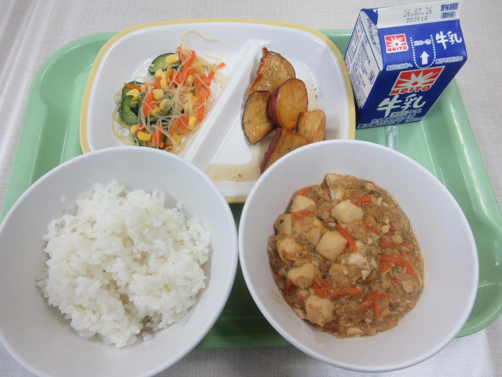 ご飯 はちみつポテト 麻婆豆腐 春雨サラダ