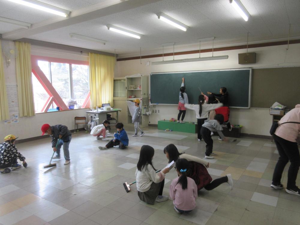 明日の卒業式に向けて、5年生が学校をピカピカにしてくれました。