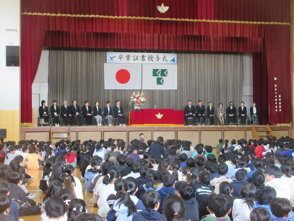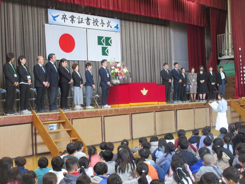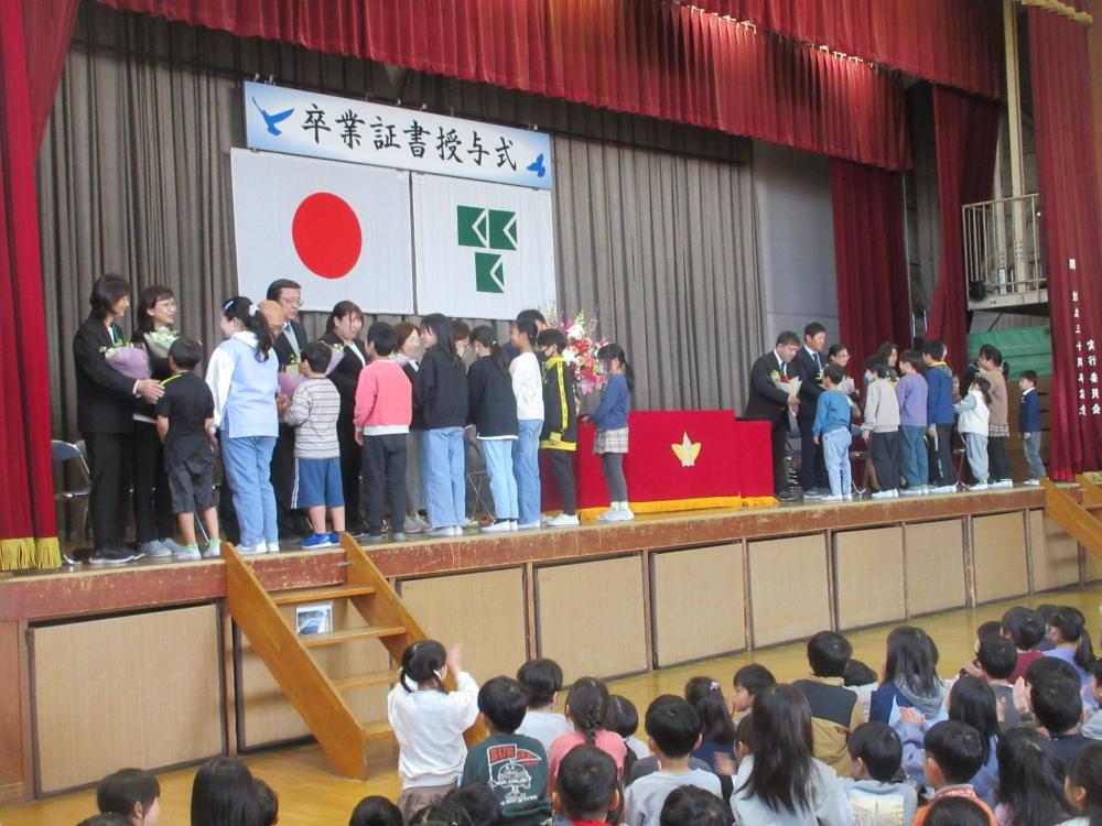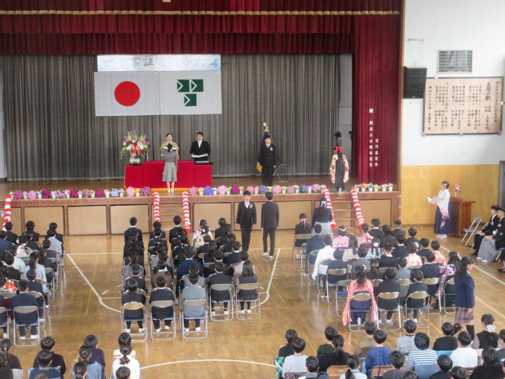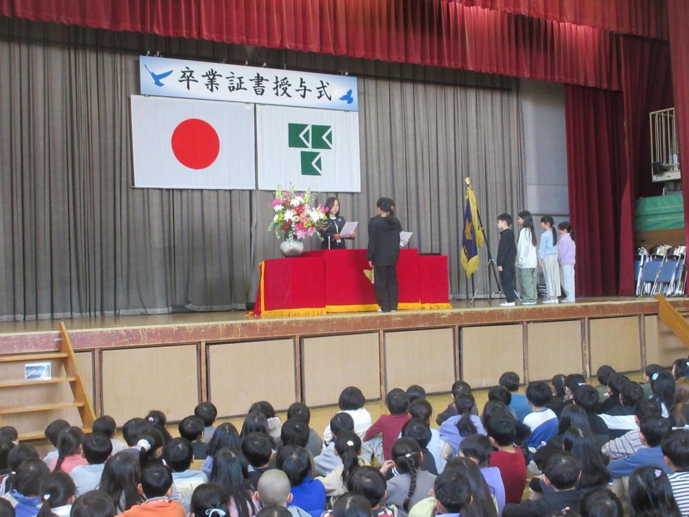 各学年の代表に、修了証を渡しました。みんな1年間がんばりました。