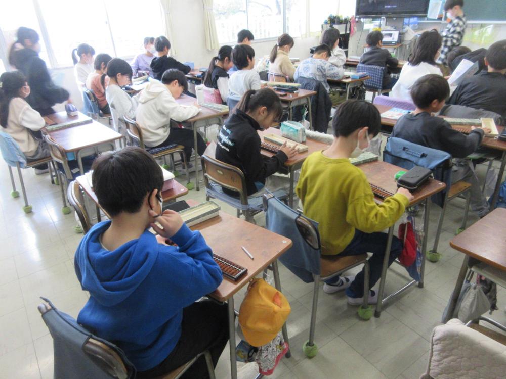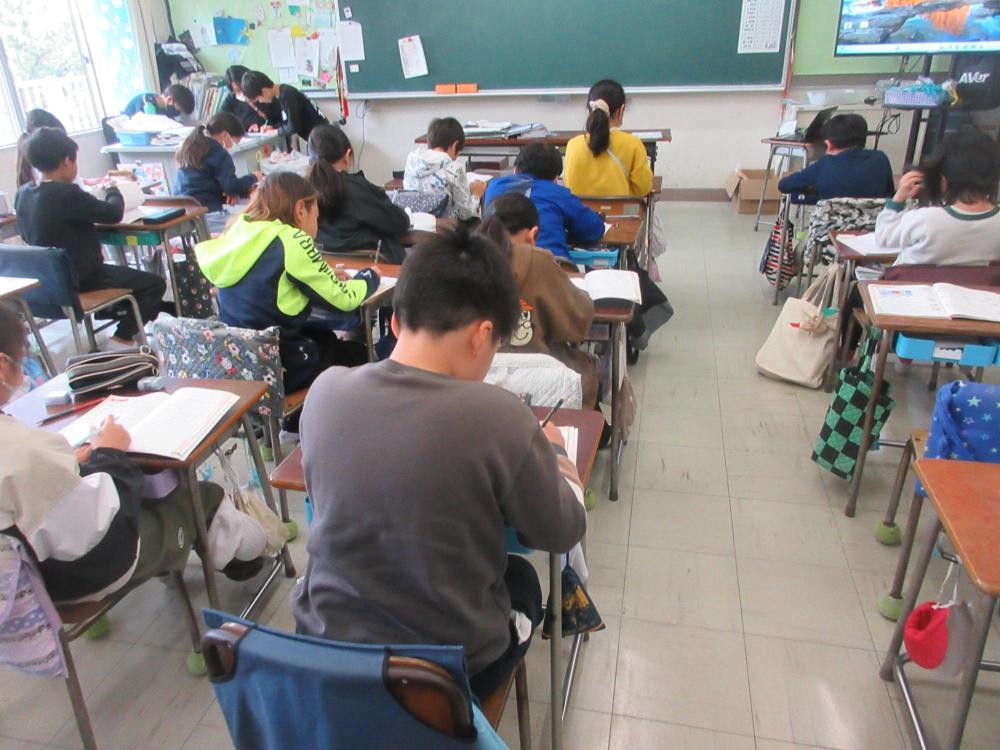 4年生 ぴんと張りつめた空気の中、集中して書いていました。