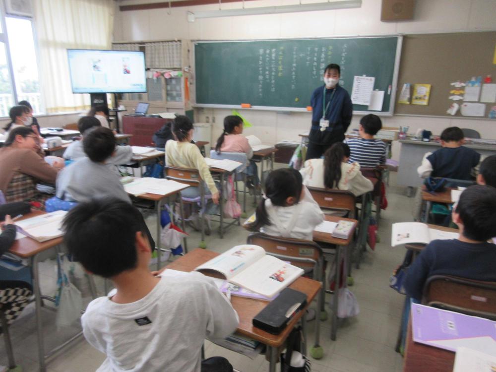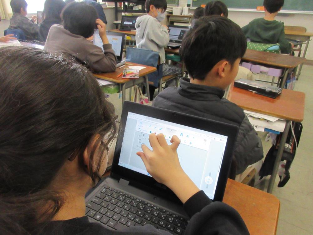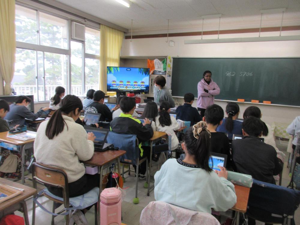 4年生が外国語活動でタブレットを使って、定着確認をしていました。