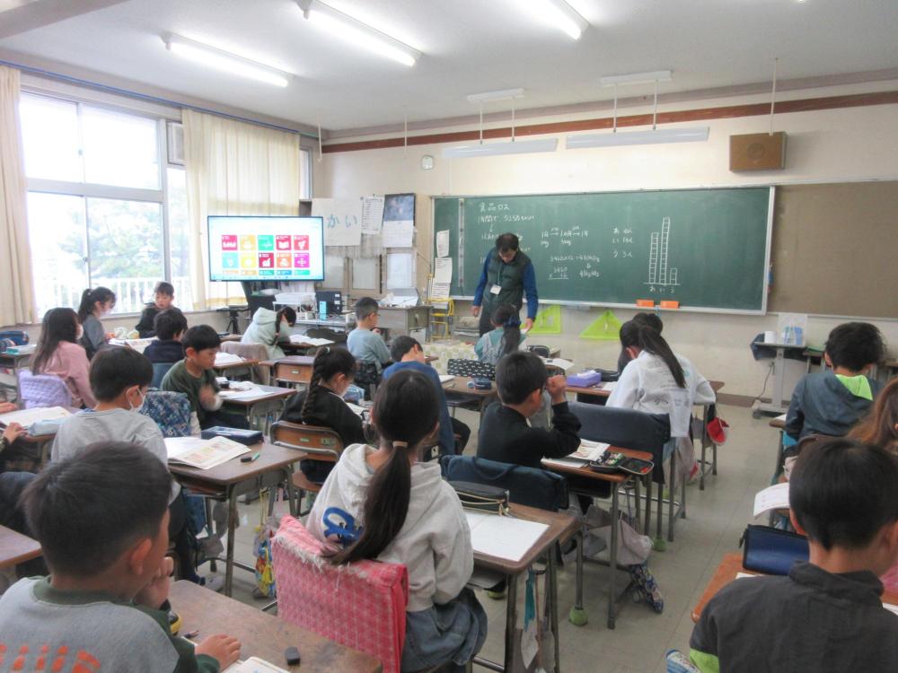 6年生はキャリア教育で、4人の社会人の方を講師としてお招きし、「働くこと」について、お話を聞きました。みんな真剣に聞いていました。