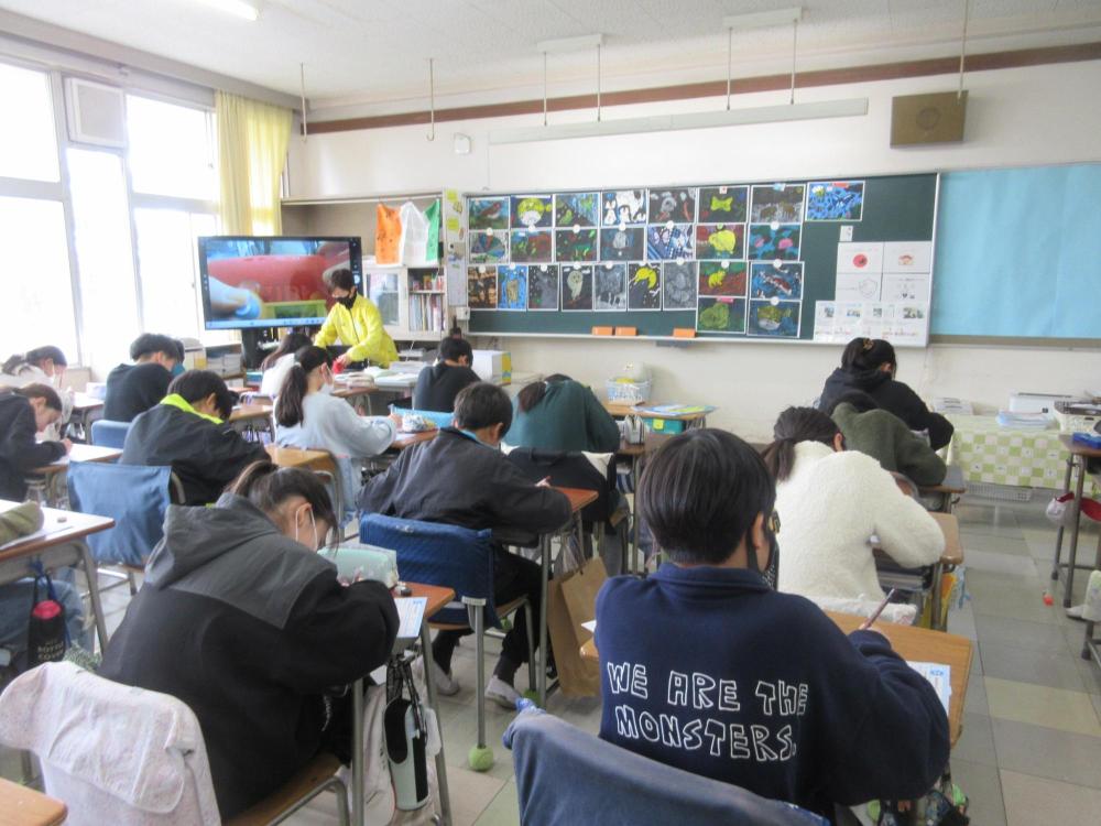 3学期始業式をオンラインで実施しました。校歌を元気よく歌っていました。