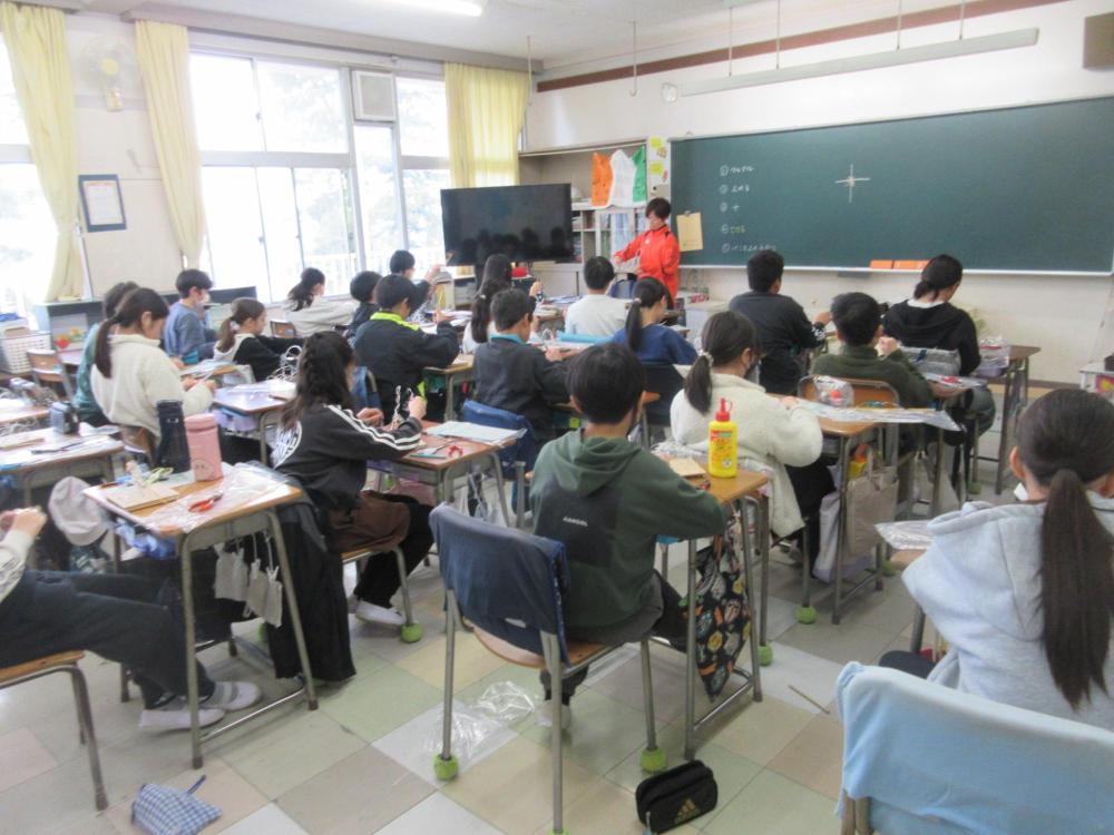 1年生道徳 黒板いっぱいに、発言が書かれていました。自分の考えをワークシートにたくさん書く姿に、成長を感じました。