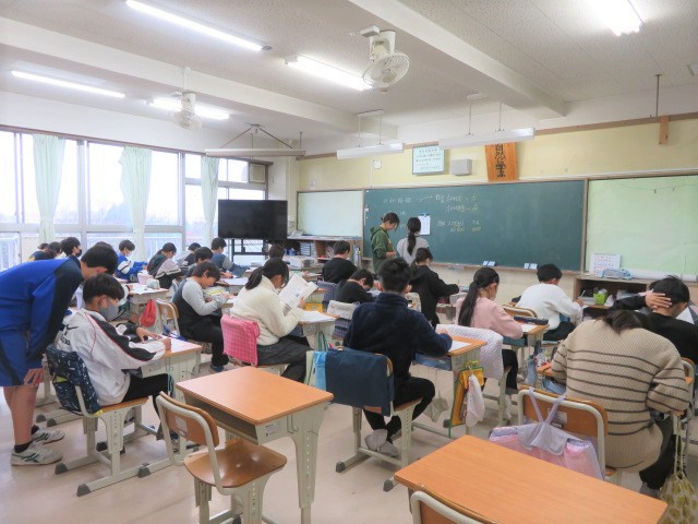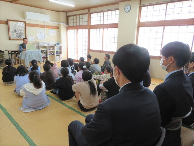 今日の5年生のお話し会を、実籾高校生が6名参観に来ました。地域の方の「壇ノ浦のたたかい」の力強い読み聞かせに、みんな聴き入っていました。3学期には高校生が読み聞かせをしてくれる予定です。