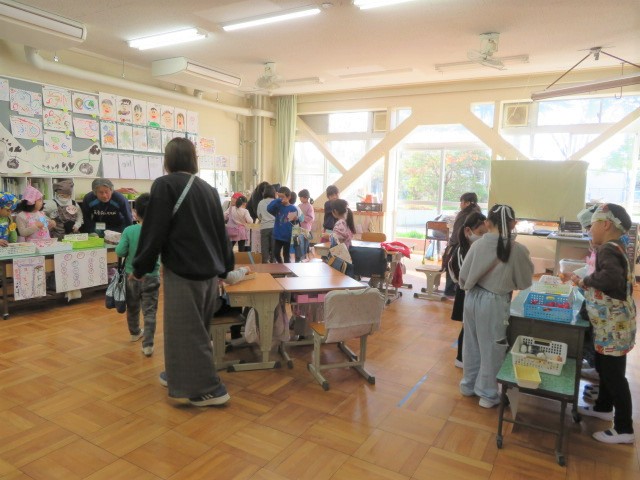3時間目と5時間目には、4組の子供たちが「みもみっこまつり」を開きました。魚つりやボウリング、的当て、くじびきなど、楽しいコーナーがたくさん!1年生が招待されて、あちこちに笑顔が広がっていました。