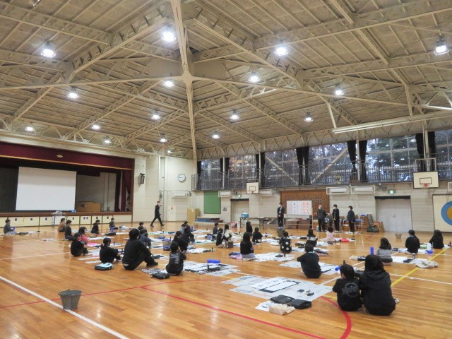 1、2時間目3年生、3、4時間目4年生が、地域の方々に書き初めを教えていただきました。「今日を楽しみにしていました。初めての書き初めですが頑張ります。」気持ちのこもった3年生の挨拶で始まりました。