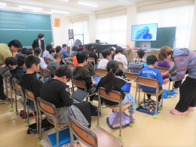 6年生は道徳「「手品師」でICTを活用しました。ツールで意見の分布を表し、そこからさらに話合いを深めていく授業です。感嘆の声をあげたり、つぶやいたり、自己対話をしている様子が伝わってきました。