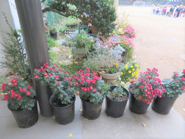春にいただいた小さな菊の苗を教頭先生が育て続けて、見事、花を咲かせることができました。(昨年度は私が枯らしました…)丁寧に世話をすると、ちゃんと応えてくれることを改めて感じます。