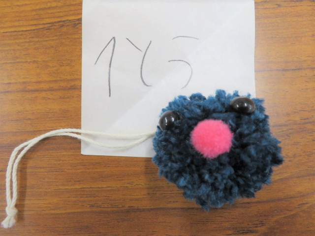 そして、1等はこの手作りの毛糸の飾りです。私もくじをひいたところ、なんと1等があたりました。大切に校長室に飾ります。