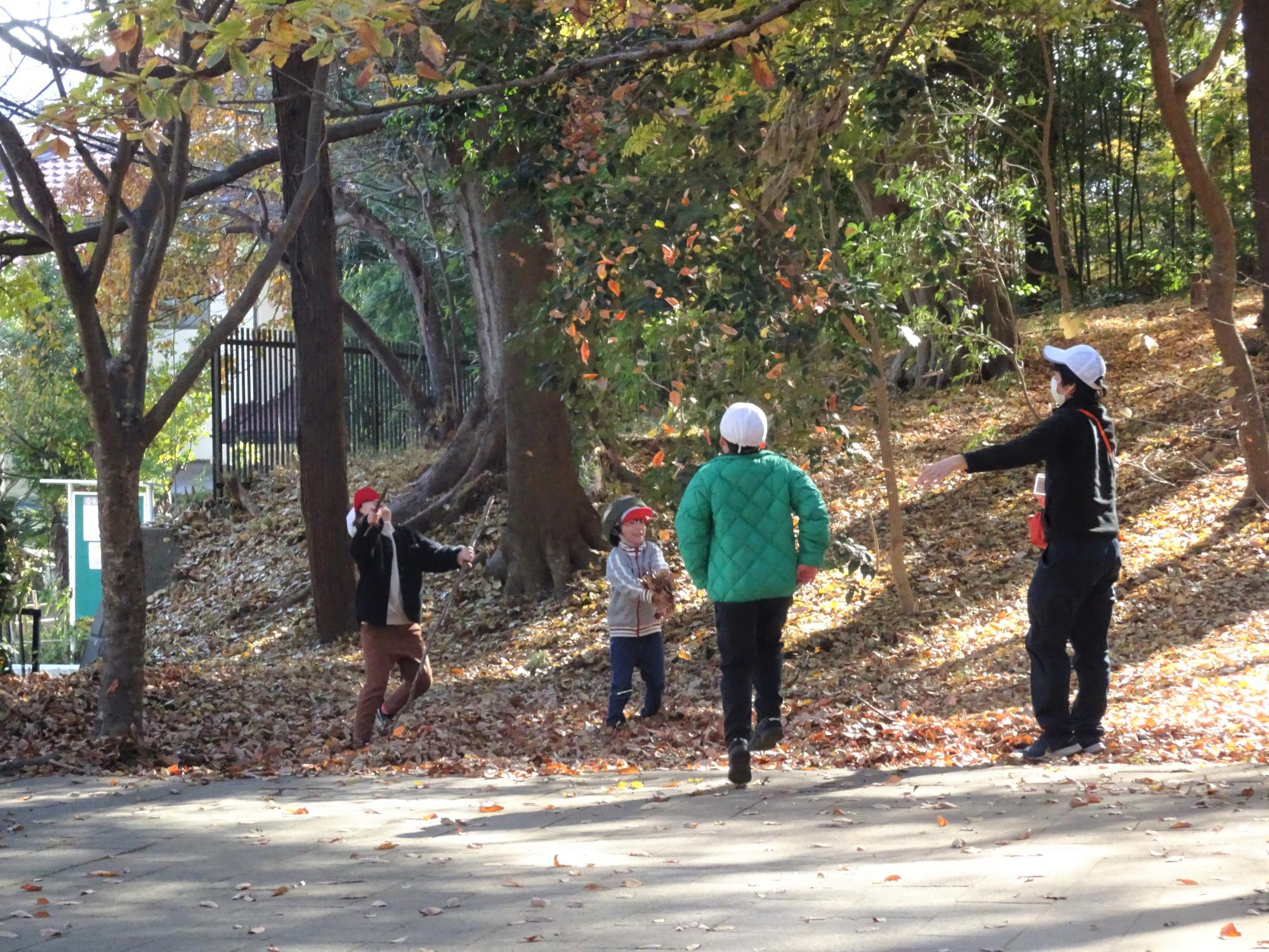 4組が「公園へでかけよう」の単元で、実籾自然公園へ出掛けました。枯葉で遊んだり、マツボックリやドングリを拾ったり、思い思いに秋を楽しみました。
