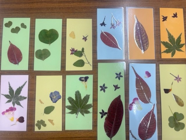 栽培環境委員会の子供たちが、落ち葉掃きを手伝ってくれた子のために、実籾小の落ち葉をラミネートしたカードを作りました。色や葉脈がより鮮やかに浮き出た、とても素敵なサプライズプレゼントです。