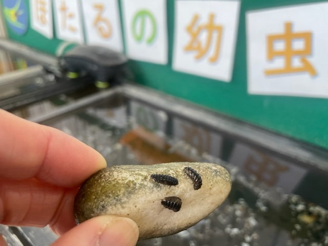 夏に卵からかえったホタルの幼虫が、こんなに大きくなってきました。うまれた頃は3mmほどで見つけることすら難しかった幼虫が、5、6年生の世話のおかげで、すくすく成長しています。