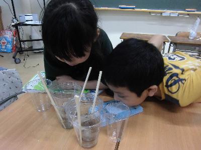 雨水のゆくえ Tweet 更新日:2025年09月24日 4年生が理科で「雨水のゆくえ」という学習をしています。 どのように雨水が流れたり、土に浸み込むのかを実験を通して学びます。 今年は大雨がたくさんありました。 そのたびにグラウンドには大きな水たまりができましたが、すぐになくなっていました。 「不思議だな」と思っていた人が多かったようです。 今日の学習を通して、グラウンドの雨水がどこにいったのか疑問を解決することができました。 みんな真剣に実験結果を見守る様子がありました。