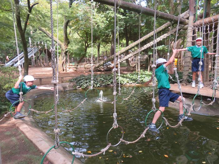 4年生校外学習 Tweet 更新日:2025年09月29日 天気に恵まれて、4年生の校外学習が無事に実施されました。 午前中は、野田市の清水公園で思い切り体を動かし、午後はキッコーマンもの知りしょうゆ館でしょうゆ作り体験とキッコーマンの工場見学を行いました。 さすが上学年です。 清水公園でもキッコーマンもの知りしょうゆ館でも、元気いっぱいの挨拶ができていました。 100種類あるアスレチックに挑戦したり、しょうゆがどのように作られているのか知ることができたり、貴重な経験ができた一日でした。