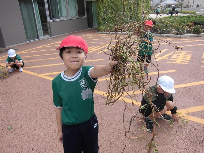 アサガオの片付け Tweet 更新日:2025年10月14日 1年生が育ててきたアサガオですが、観察が終わり、片付けをしていました。 毎日水やりを頑張って行っていた甲斐があって、たくさんの花が咲き、観察をすることができました。 夏休みには、各御家庭で保護者の皆様にも御協力いただき、ありがとうございました。 片付けで出たアサガオのツルは、リース作りの練習で使用していきます。