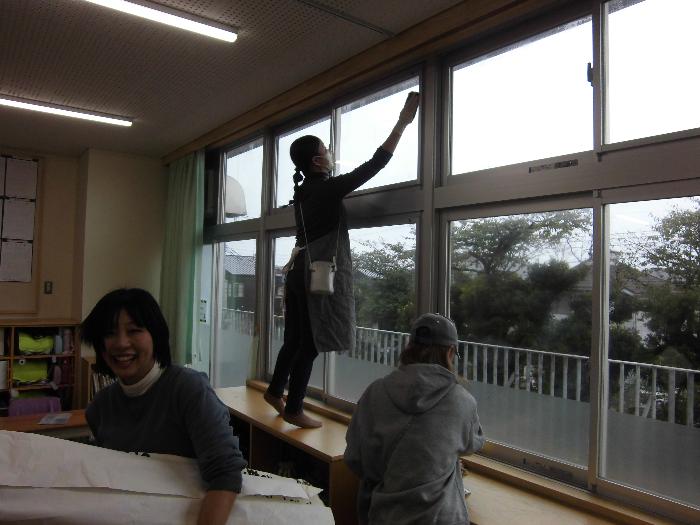 100名を越える保護者のみなさんに御参加いただき、普段の清掃ではきれいにしきれていなかった場所まで、とてもきれいにしていただきました。