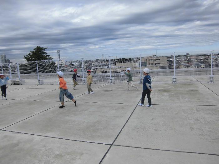 業間休み Tweet 更新日:2025年10月27日 天気がすっきりしない日が続いていましたが、今日は太陽の日も出て、業間休みには外で元気に遊ぶ姿がありました。 体育館の建築工事の関係で、業間休みの遊び場所はグラウンド、プラタナス広場、屋上の割り当てを学年ごとにローテーションしています。 今日は2年生が屋上で遊ぶ日でした。 元気な声が響き渡っていました。 体育館とグラウンドの完成が待ち遠しいです。