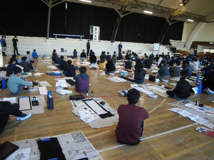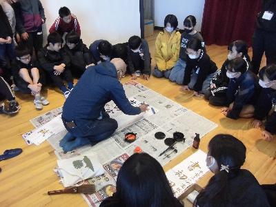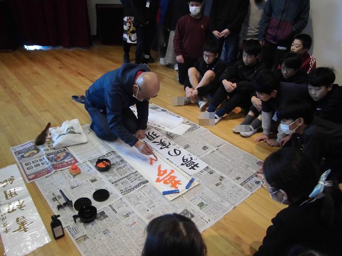 書初め練習 Tweet 更新日:2025年12月04日 校内席書会に向けて、習志野市の元校長先生をゲストティーチャーにお招きして書初めの学習を行いました。 今日は6年生と4年生が練習を行いました。 学級ごとに先生の近くに集まって実際の筆遣いを見学し、先生からお話しいただいたポイントに気を付けて集中して取り組む姿がありました。 今回の練習を生かして、冬休みに練習に取り組み、1月の席書会にて成果を発揮できるよう願っています。 明日は5年生と3年生が書初め練習を行います。