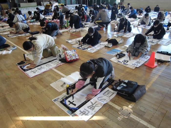 書初め練習2日目 Tweet 更新日:2025年12月05日 今日は5,3年生が書初め練習でした。 昨日も指導していただいた元校長先生に今日も教えていただきました。 5年生はとても集中して力強い文字を書き上げる人がたくさんいました。 3年生は初めての書初めでしたが、準備も片付けも手際よく行い、教えてもらったことを生かして一生懸命書く姿がありました。 筆の手入れの仕方も教えてもらったので、おうちに帰ってから、しっかりと自分で手入れを行ってほしいと思います。
