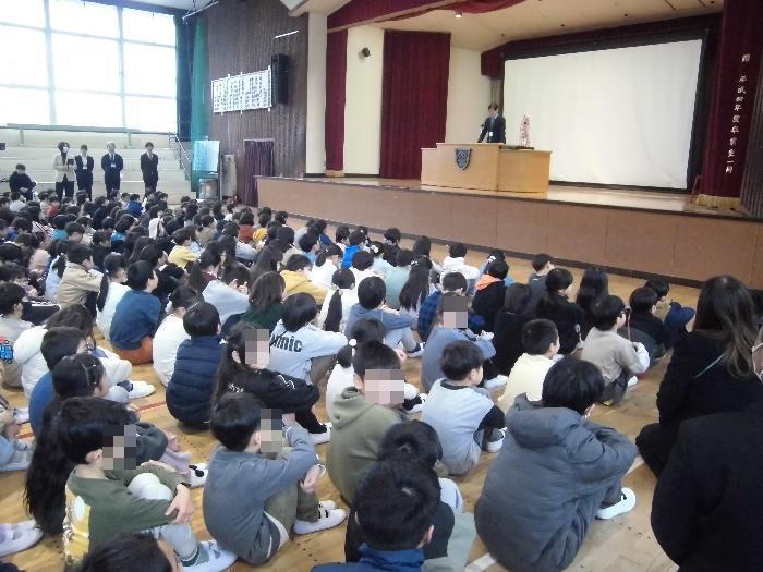 始業式では、校長先生から「たくさん挑戦していく3学期にしよう」というお話がありました。失敗を恐れずに新しい一歩を踏み出す大切さを、子どもたちは真剣な表情で聞いていました。