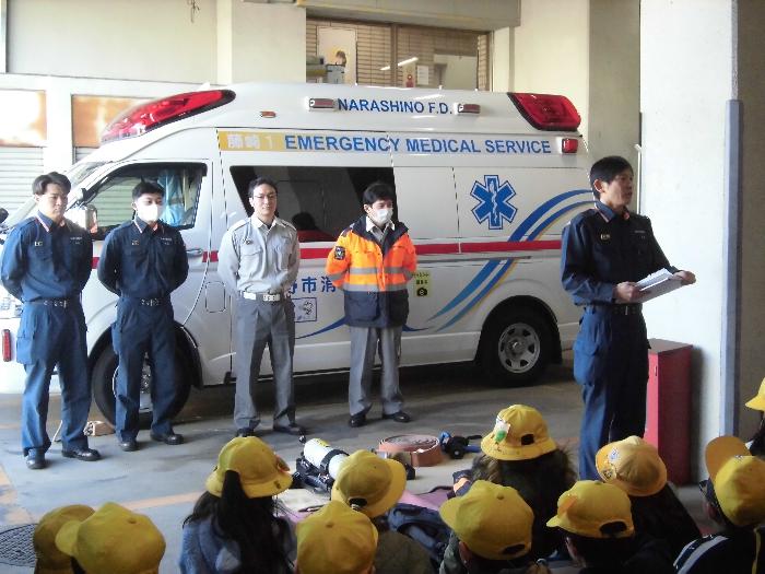 消防署見学 Tweet 更新日:2026年01月14日 3年生が「くらしを守る(火事をふせぐ)」という学習の一環で、消防署を見学しました。 迫力あるはしご車に加え、署内のトレーニング室や食堂、仮眠室など、24時間体制で町を守るための施設に驚きの連続でした。 消防署で働く人の工夫や努力を肌で感じ、学びの多い一日となりました。