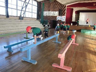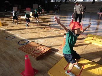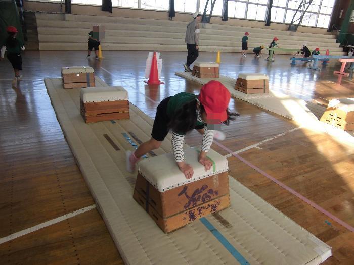 寒さに負けず!1年生の跳び箱遊び Tweet 更新日:2026年01月20日 1月の冷え込みが厳しい体育館ですが、1年生の子どもたちは元気いっぱいです! 現在、体育の授業では「跳び箱を使った運動遊び」に取り組んでいます。 跳び箱を跳ぶだけでなく、手をついて飛び乗ったり、またぎ越したりと、いろいろなコースを回りながら工夫して体を動かしています。 友だちと競い合ったり、応援し合ったりしながら、寒さを吹き飛ばすような熱気の中で楽しく活動しています。