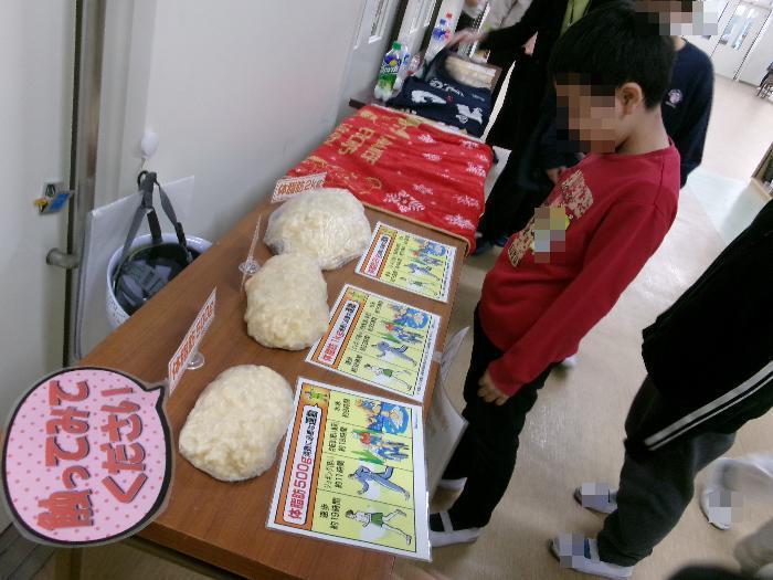 活動の中では、本物そっくりの「脂肪1キロ模型」を一人ずつ持たせてもらう場面も。「重い!」「これが体に付くんだ……」と、その重みにびっくり。健康についての実感がぐんと深まったようです。