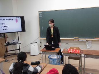 4年生の教室に、市役所の保健師さんが来てくださいました!テーマは「生活習慣病の予防」です。