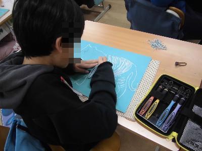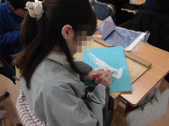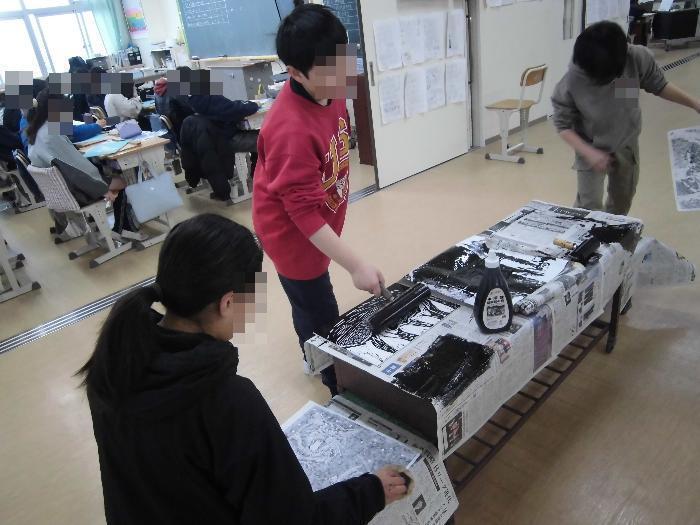 5年生が図工で版画の作品制作に励んでいます。今回のテーマは「毛のある動物」です。
