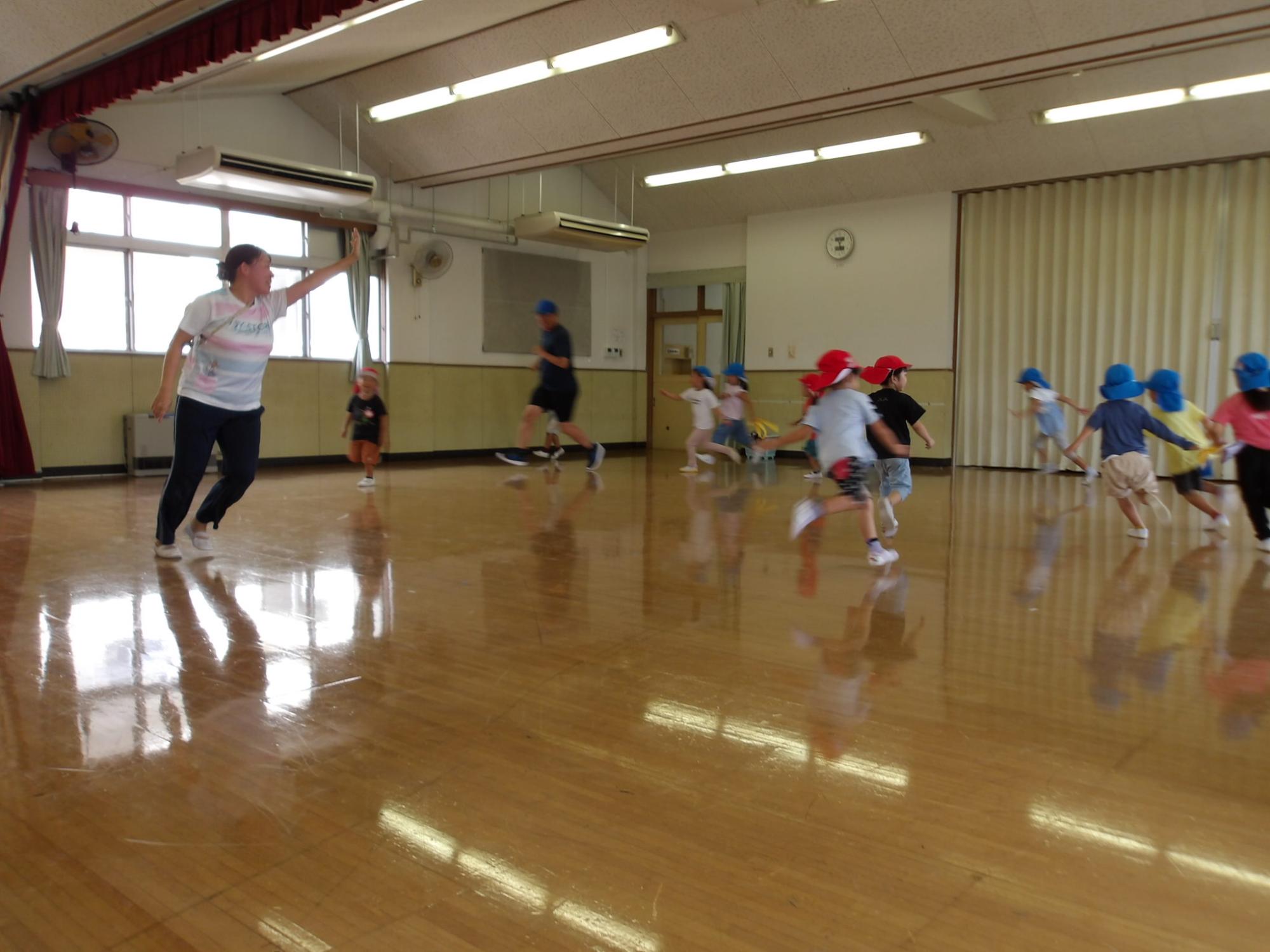 生活発表会で年長組が縄跳びやホッピングなどの得意技を披露する姿を見て、年長組のことが大好きな年少組も刺激を受けて「やってみたい!」と毎日挑戦中です。