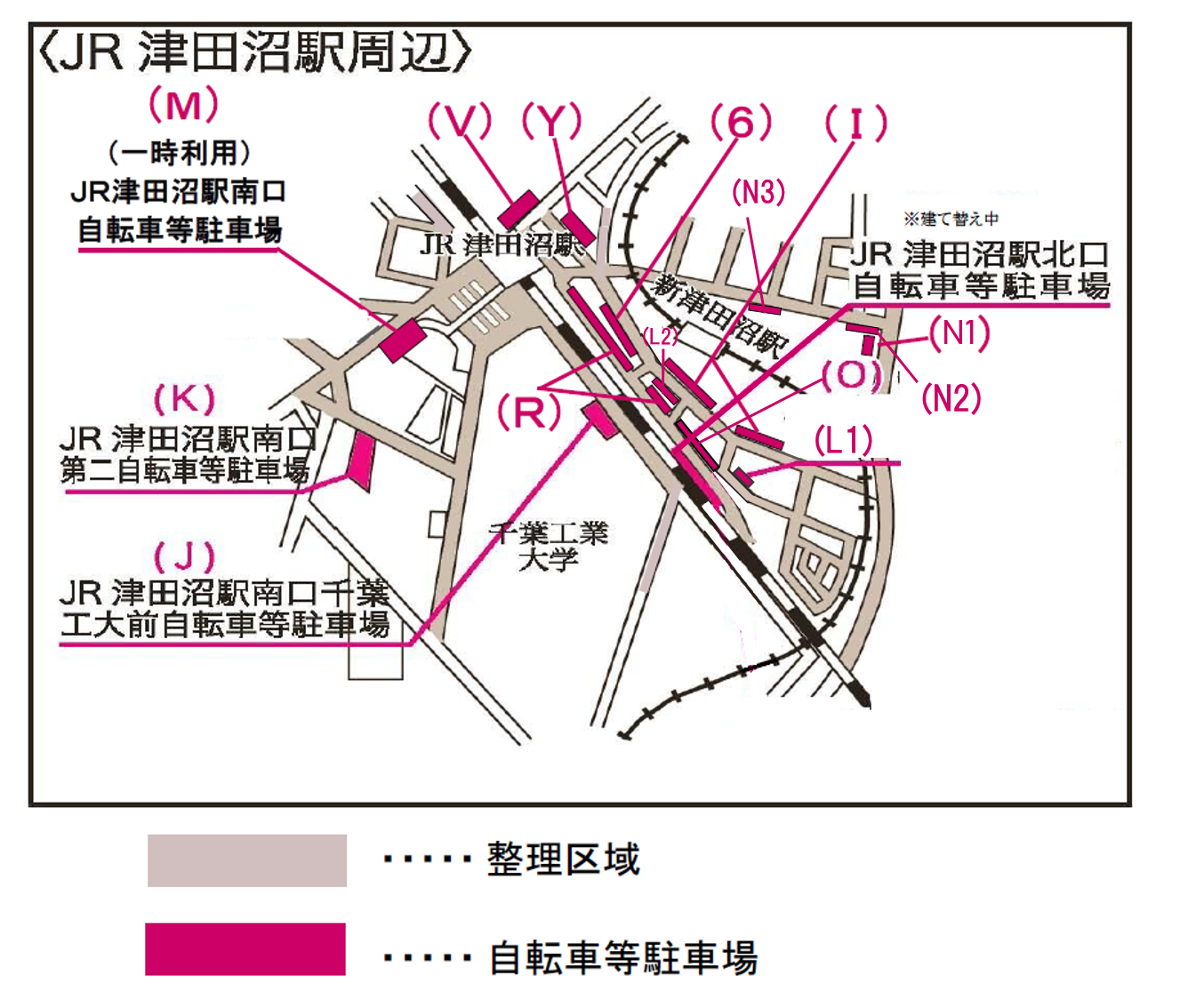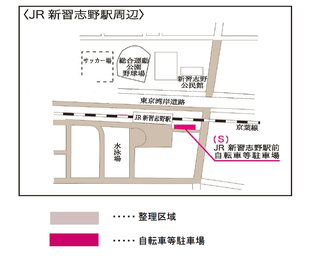 JR新習志野駅周辺の自転車等駐車場と整理区域 (PNG: 218.3KB)
