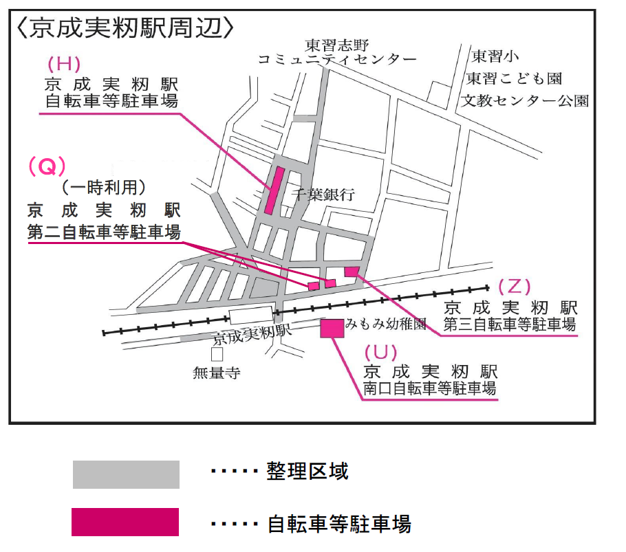 実籾駅周辺の自転車等駐車場と整理区域 (PNG: 307.5KB)