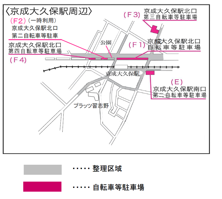 京成大久保駅周辺の自転車等駐車場と整理区域 (PNG: 267.5KB)