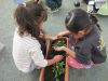 4歳児は、ミニトマトの栽培を始めました。「早く大きくなってほしいな」と成長を楽しみにしています。
