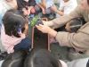 たらいの水を道具を使いすくってこぼして、何度も何度も繰り返しています。その目はまるで研究者!