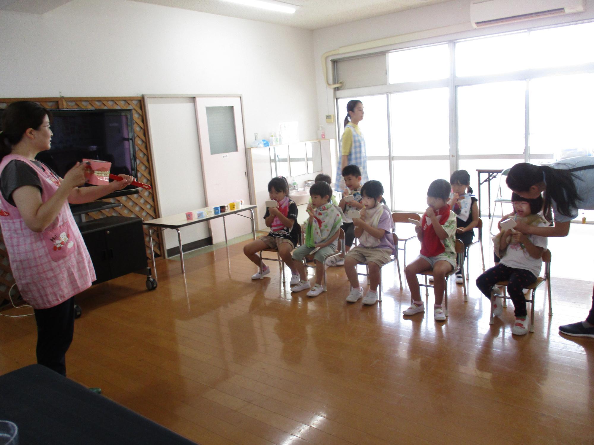 年長組の栄養教育では、「よく噛もう」がテーマでした。