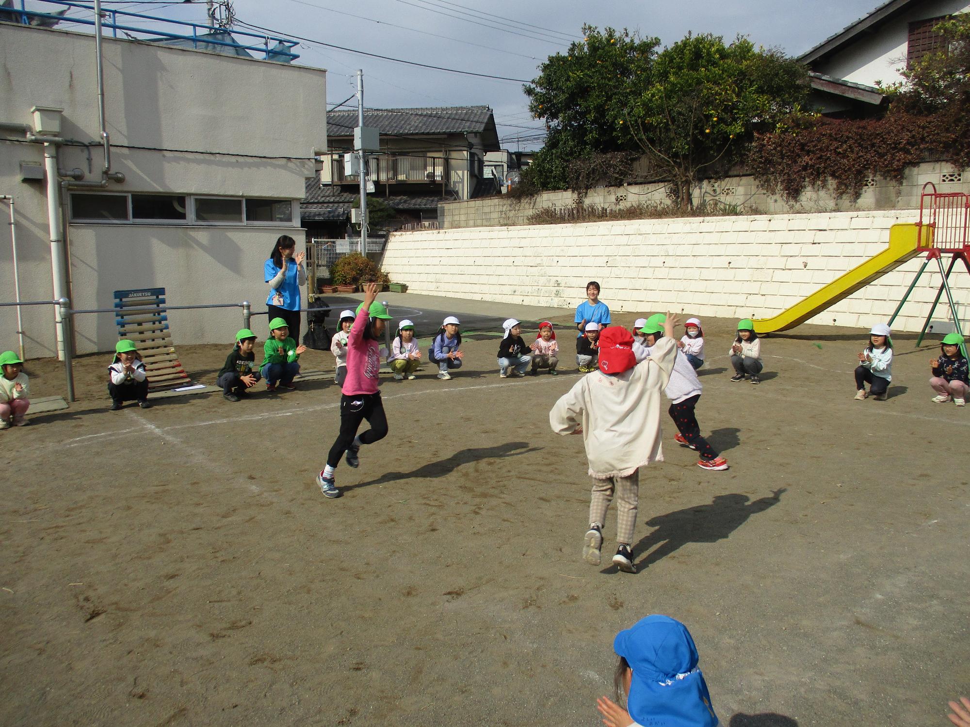 屋敷幼稚園で「ラウンドチェーン」をして、他の幼稚園の友だちとのふれあいを楽しみました。